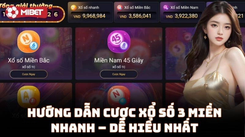 Hướng Dẫn Cược Xổ Số 3 Miền là chủ đề được nhiều người quan tâm khi muốn tham gia vào hình thức cá cược hấp dẫn này. Với ba khu vực Bắc – Trung – Nam, mỗi miền lại có cách chơi, quy tắc và tỷ lệ thưởng khác nhau. Để chơi hiệu quả, người chơi cần nắm rõ cách đặt cược, cách soi cầu và quản lý vốn hợp lý. Bài viết dưới đây của Mibet sẽ giúp bạn hiểu toàn bộ quy trình cược xổ số an toàn và dễ trúng nhất hiện nay.