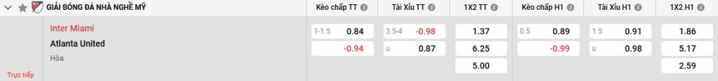 - Kèo châu Á: Inter Miami -1.25 / 0.84