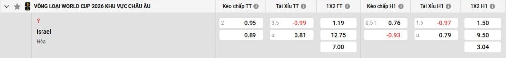 Soi kèo Ý vs Israel